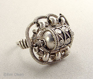 This ring is a slightly modified version of the Ethnic Ring I created a while ago. The only major difference is the scalloped edge. Although pretty intricate, this tutorial is considered intermediate level, and it can be made very quickly after you get the hang of it. Amazingly, the trickiest part is the shank!
