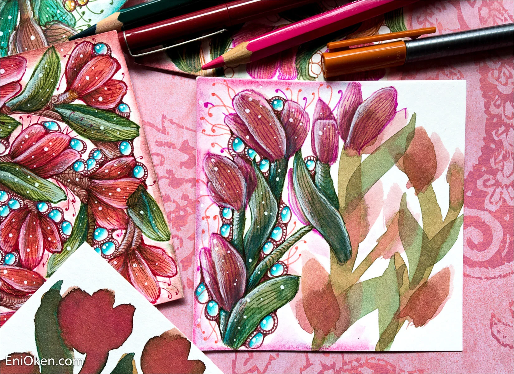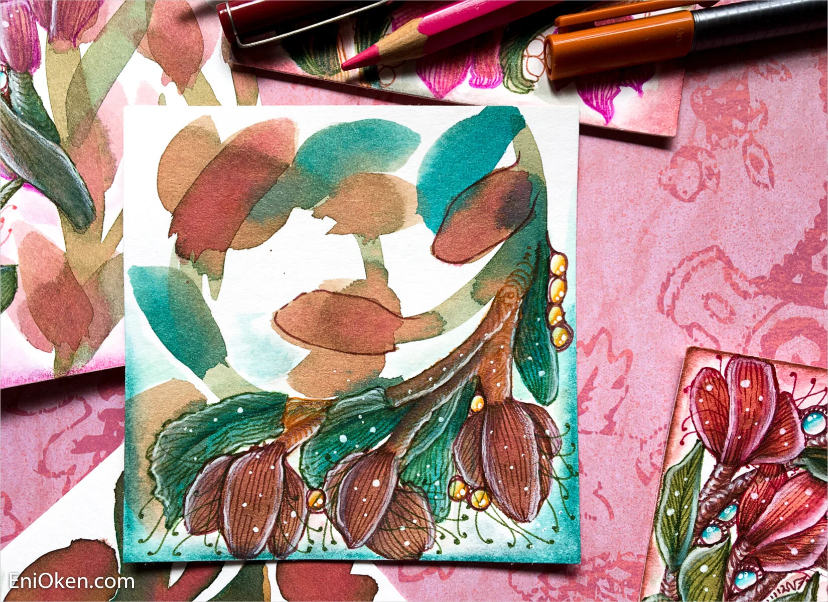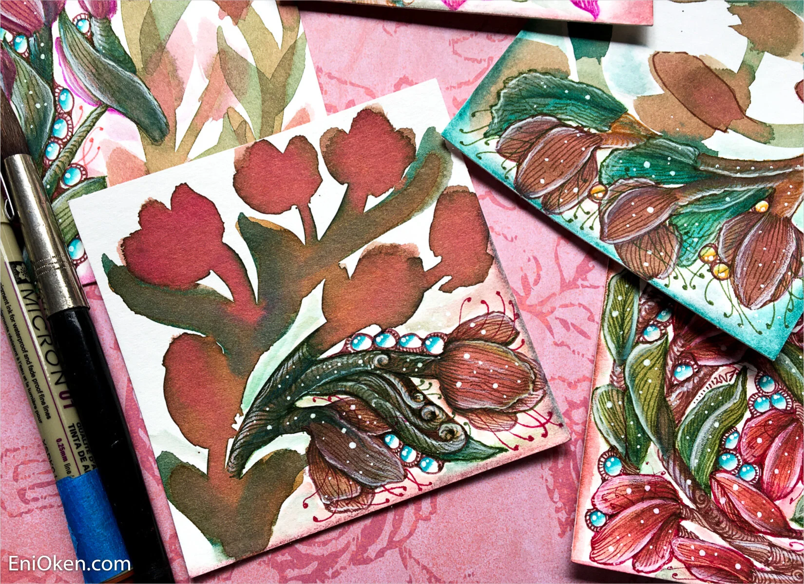 Here's are some other examples I made only halfway to show the difference between the watercolor portion and the finished side:
