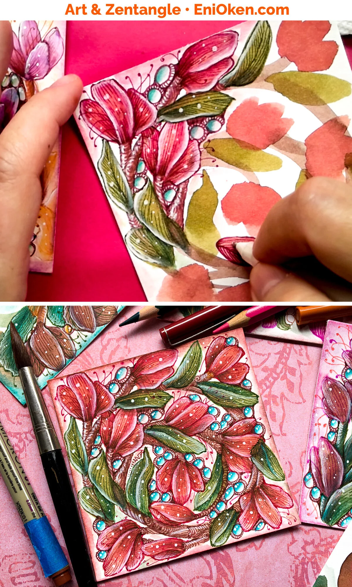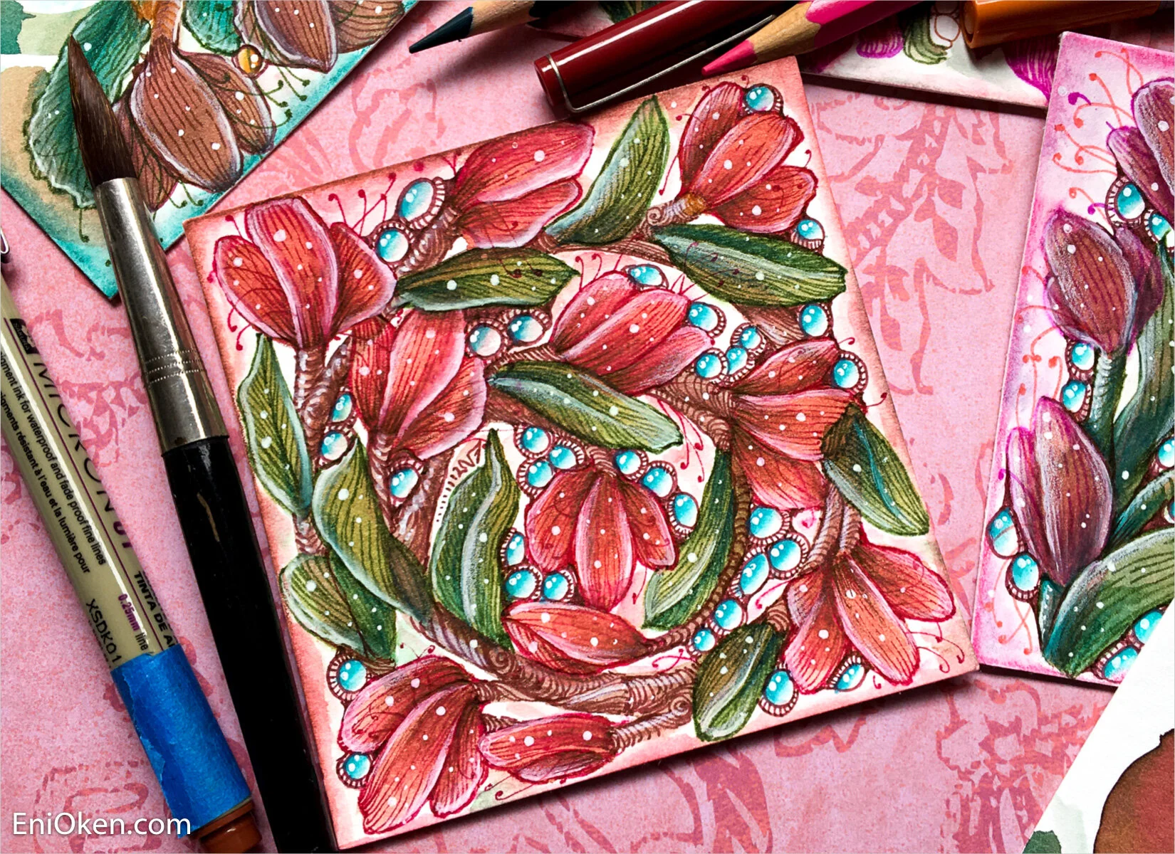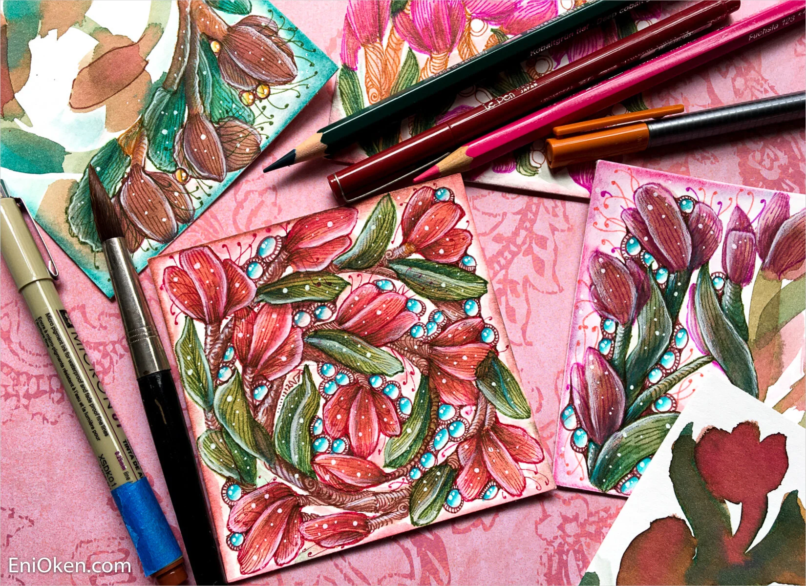 Here's are some other examples I made only halfway to show the difference between the watercolor portion and the finished side: