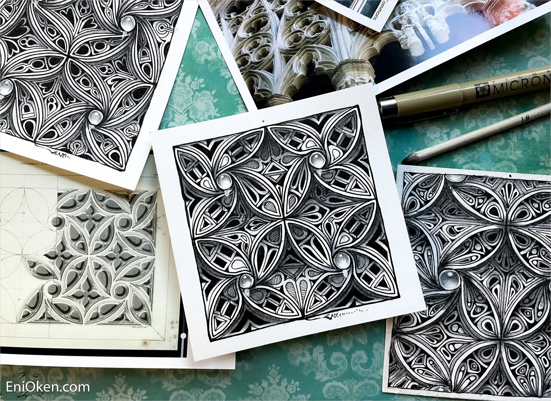 What a GREAT class Art Clubbers and I had today using the tangle Well enhanced with Tracery! I love all my classes, but this one was REALLY special because of how it was inspired in historic architecture.