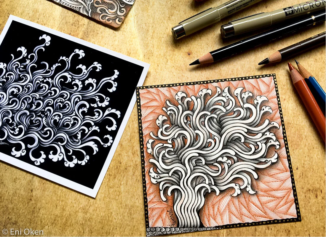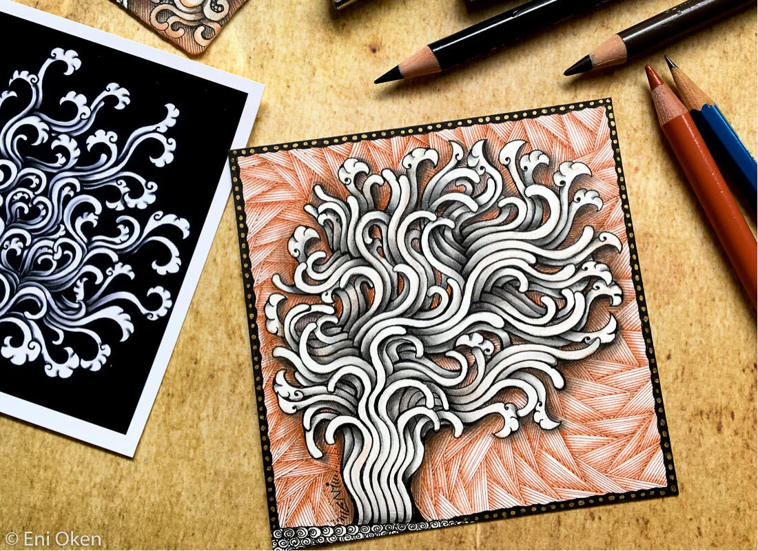 Yesterday we had another great online live online session for Art Clubbers (my live online classes are entirely free for Clubbers). We explored the new Zentangle pattern Hollis to create a “Hollis Tree”.