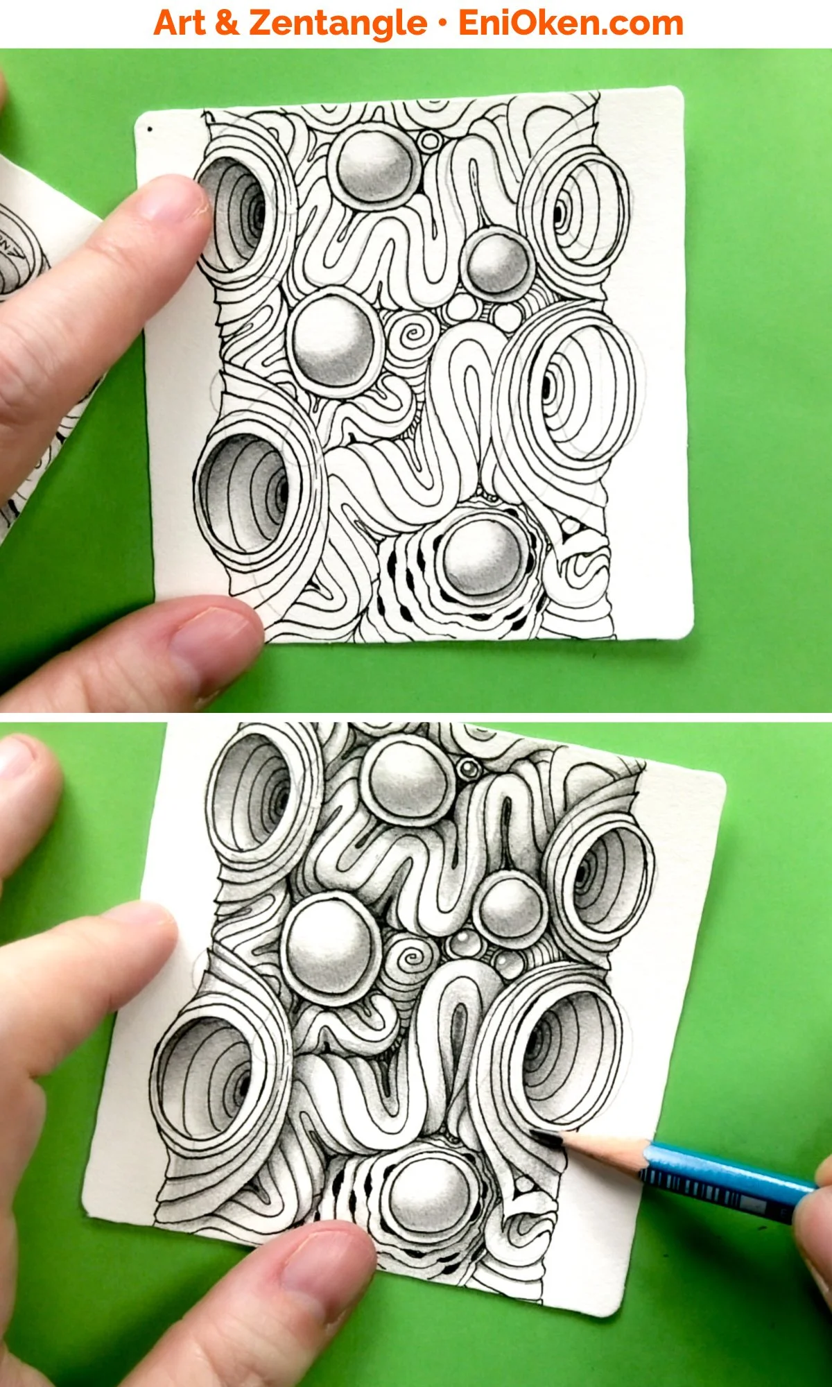 Yesterday Art Clubbers and I explored a class on how to make this fun picture, a mix of Sinkholes, Wartz Tangle (Genevieve Crabe) and Prestwood (Margaret Bremner).