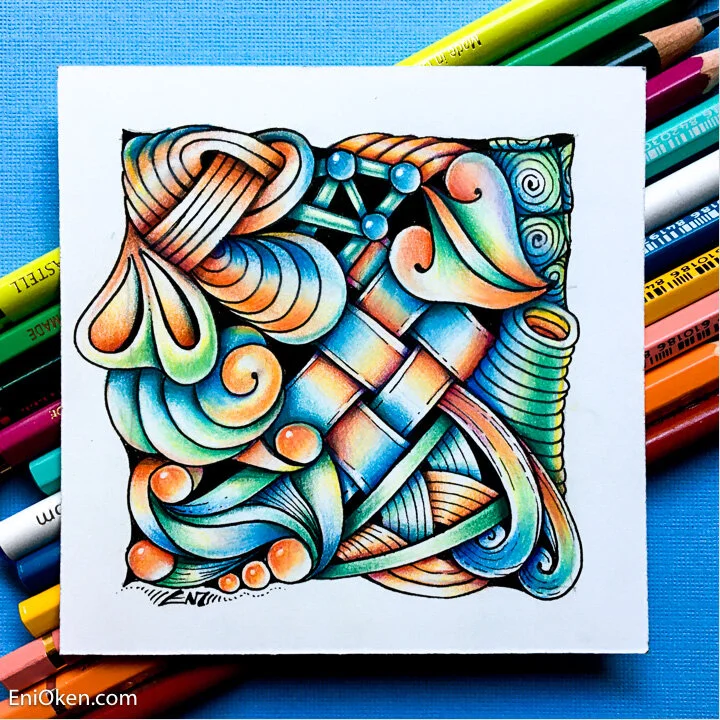 Here's a mini-step out of what we'll do, slowly testing the Rainbow Shading technique with different tangles, forming a sampler of sorts.