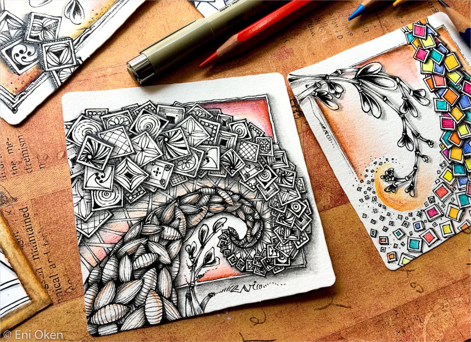 Another sample picture for the Overlapping Tangles class. This one was SUPER FUN to make and gave me a lot of Zenflow. Intense! Here is the before and after: