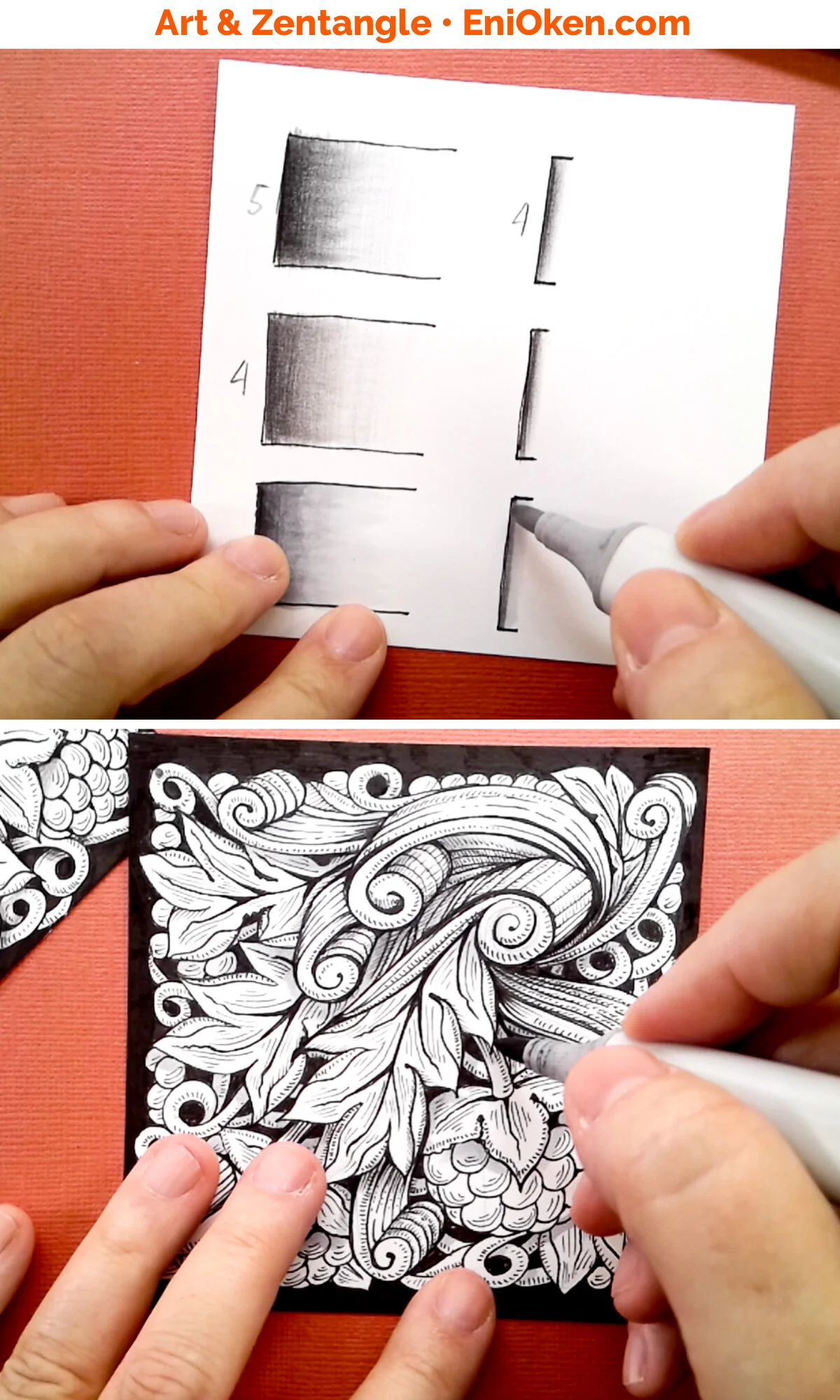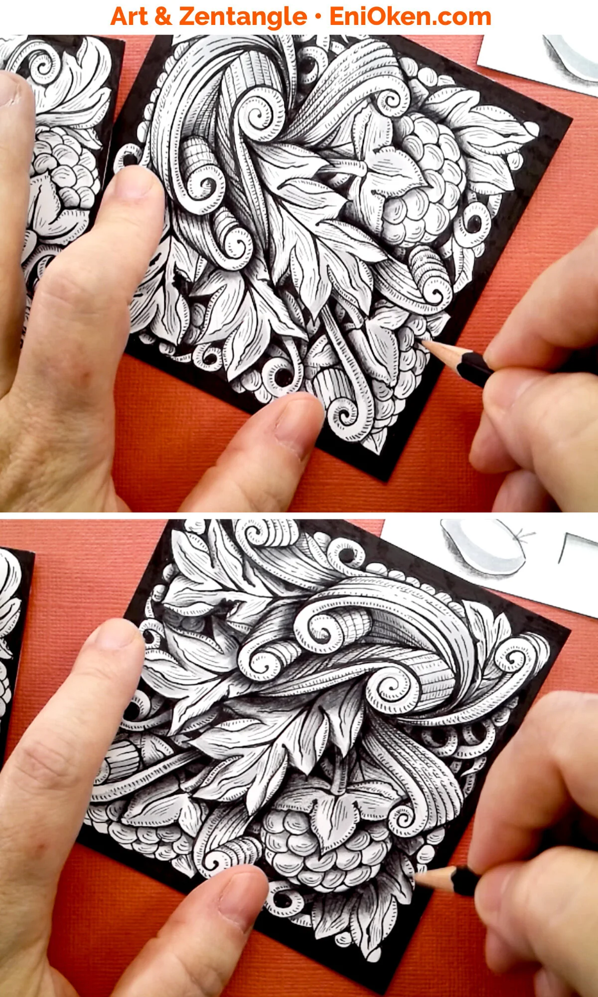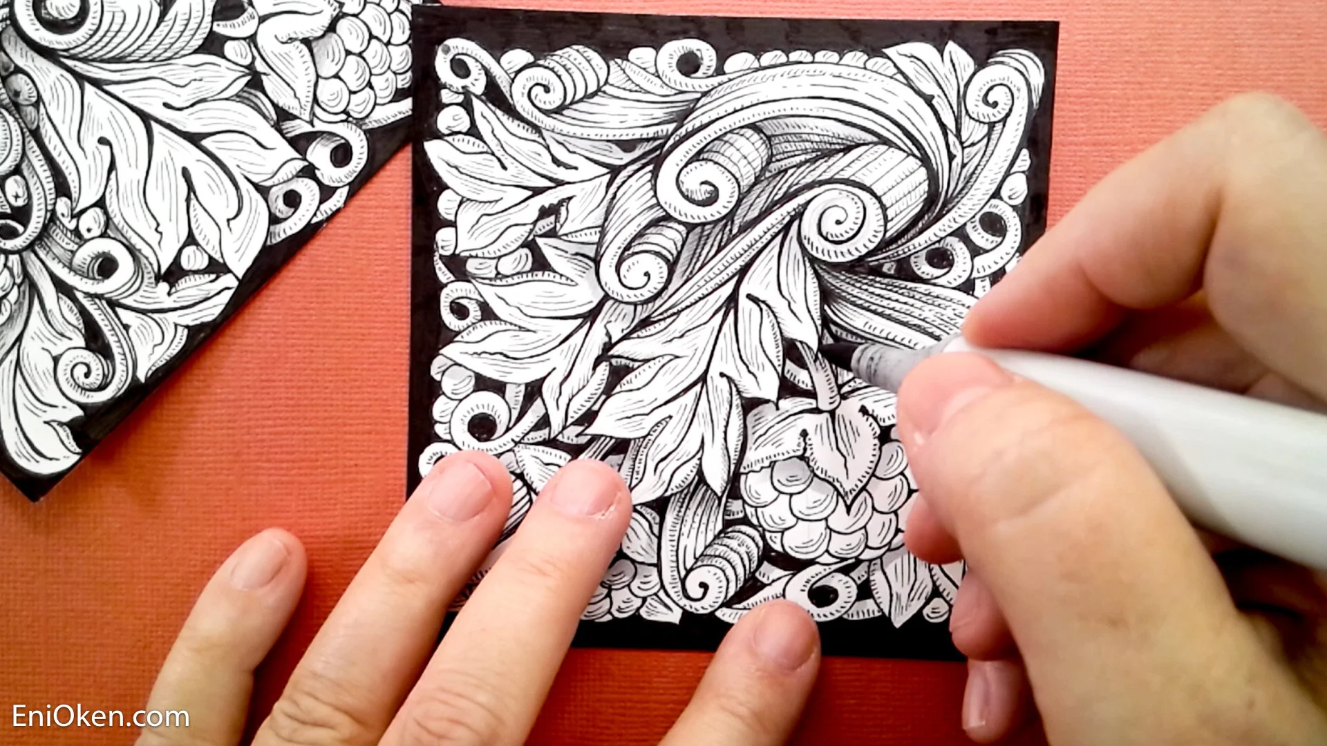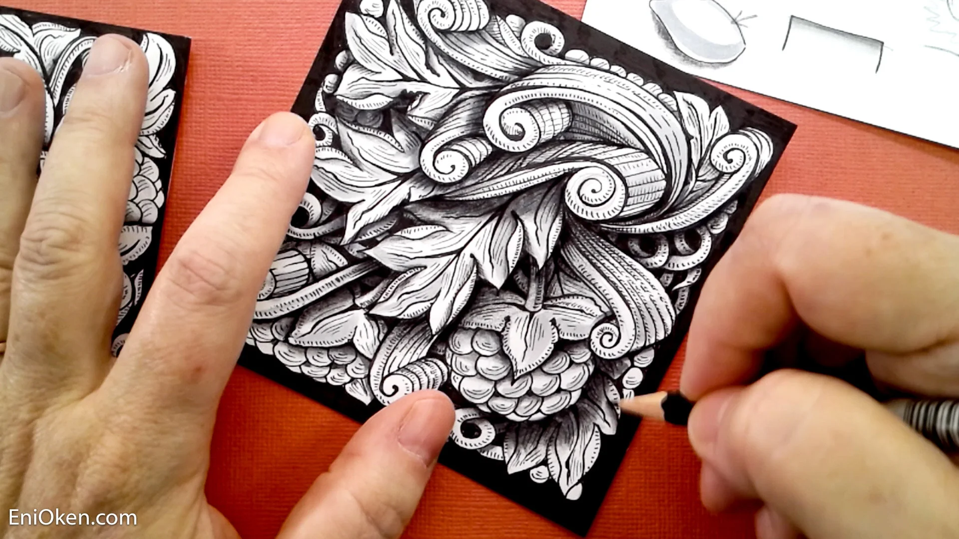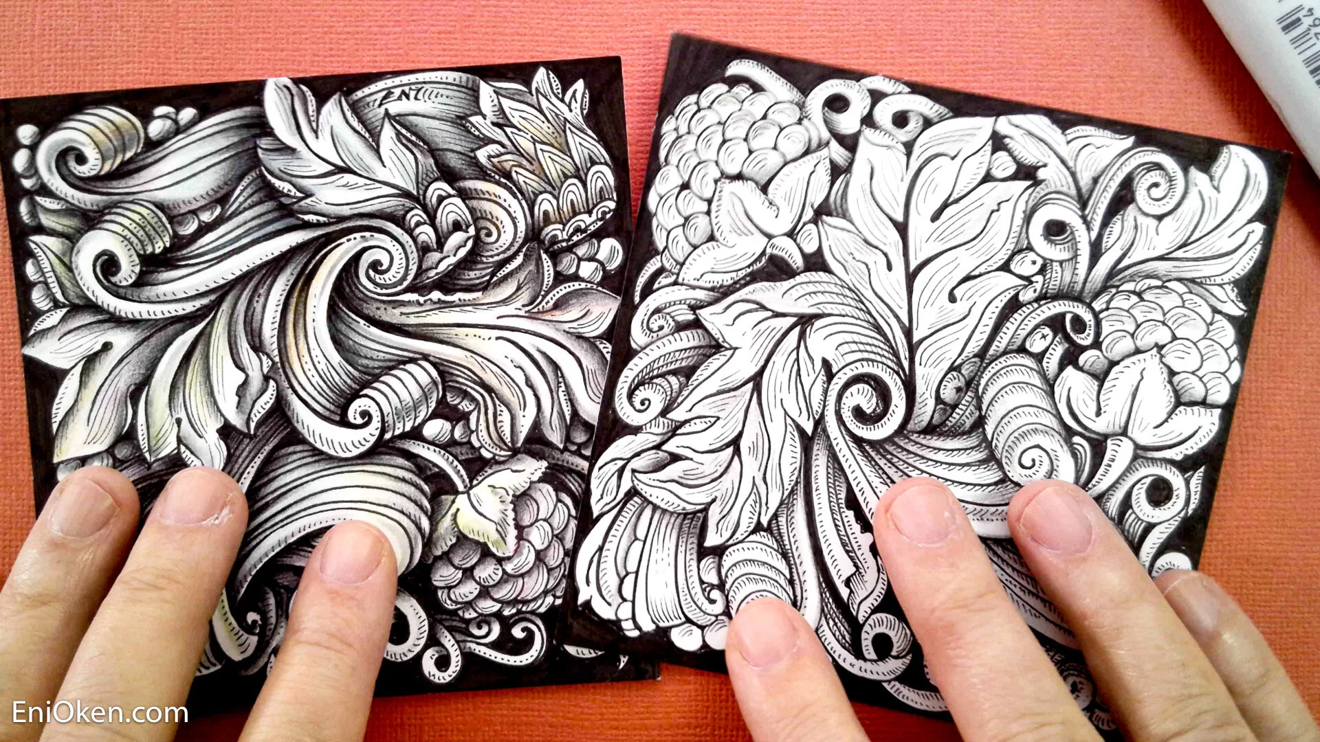 Yesterday Art Clubbers and I had completed the Vines and Berries project, we worked on dramatic shading. Clubbers had completed their line-art in Part 1 Class, exploring how to create this botanical inspired piece using Bronx Cheer, Mooka, Icanthis (all three Zentangle) and also Vynes (Eni Oken).