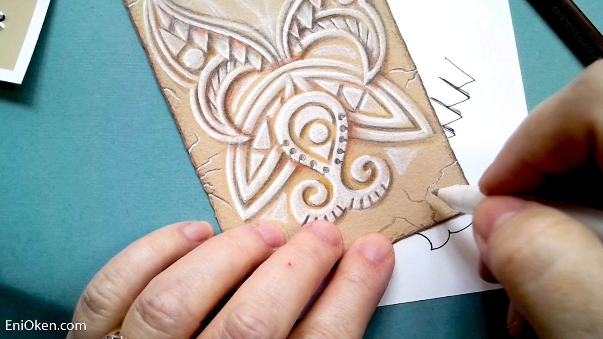 Art Clubbers and I finished the fourth and last part of the White Carvings series, adapting the technique to traditional tangles.
